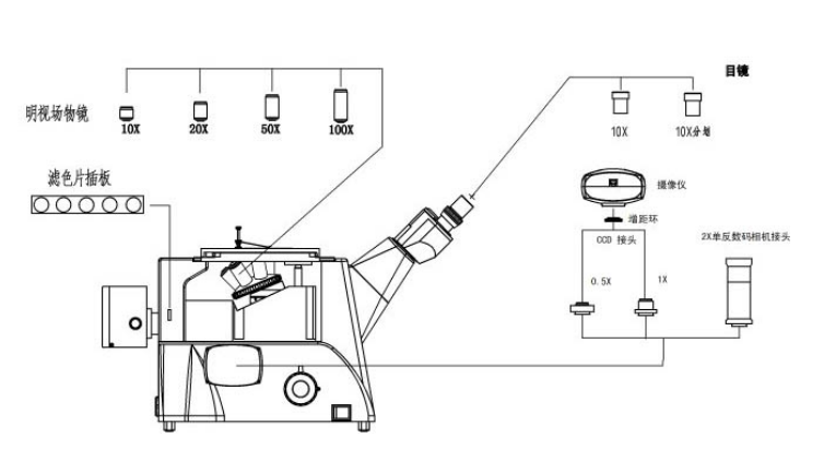 鉸鏈式雙目鏡筒,45°傾斜;瞳距調節(jié)范圍53~75mm.
